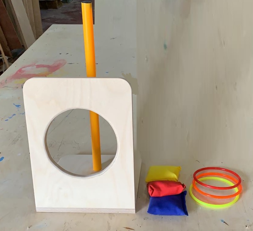 משחק מעץ השחל וקלע כולל 3 שקית שעועית + 3 טבעות השחלה יציב ולא זז