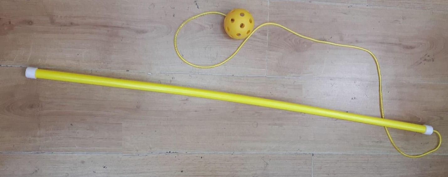 בקצה החוט כדור המשמש כמשקולת.