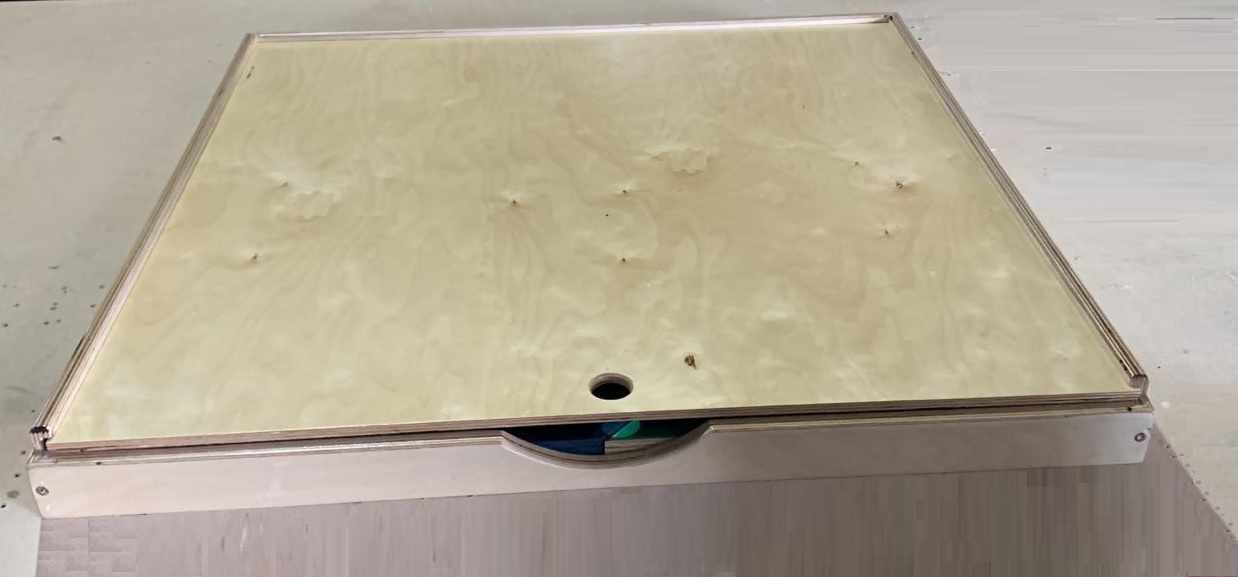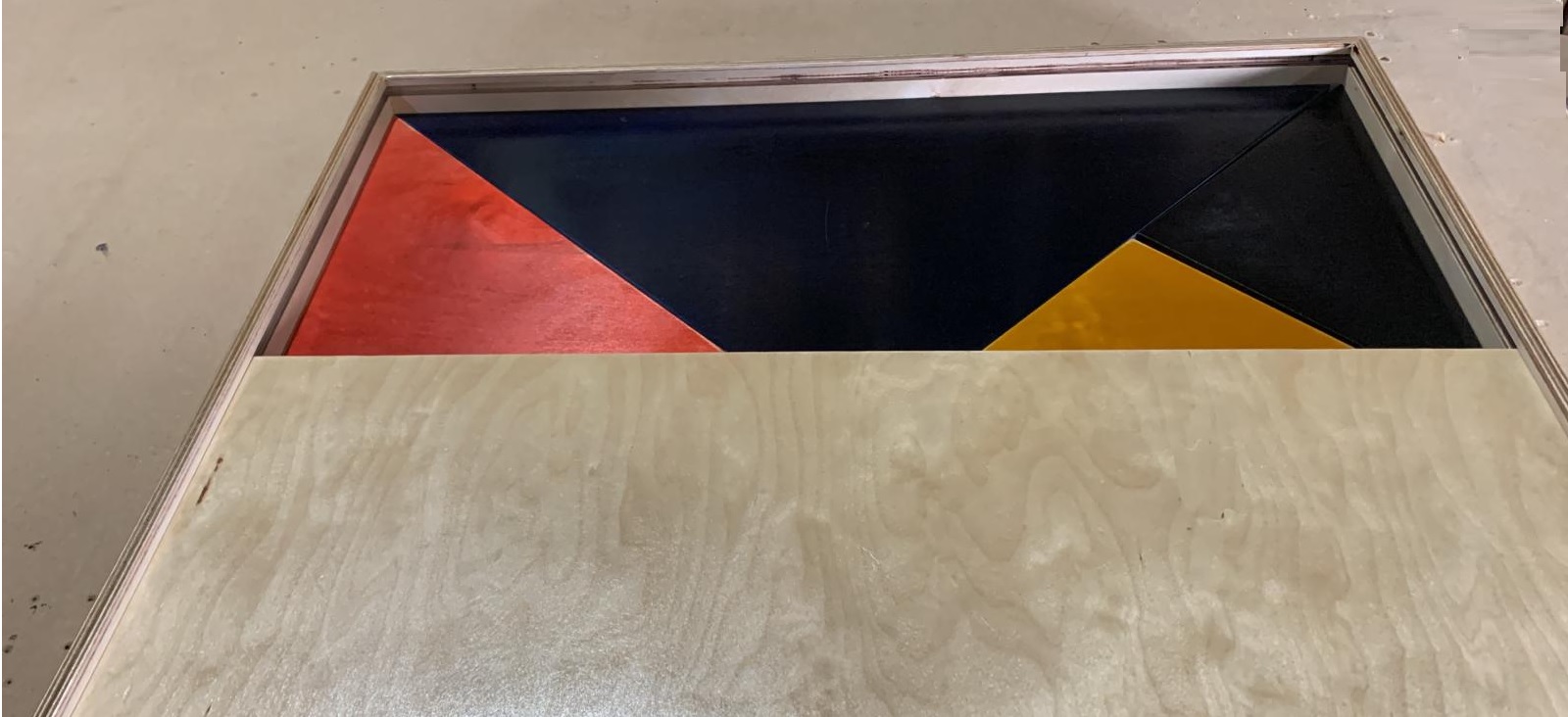 בתוך מארז עץ, מסודרות שבע צורות גיאומטריות מגוונות.