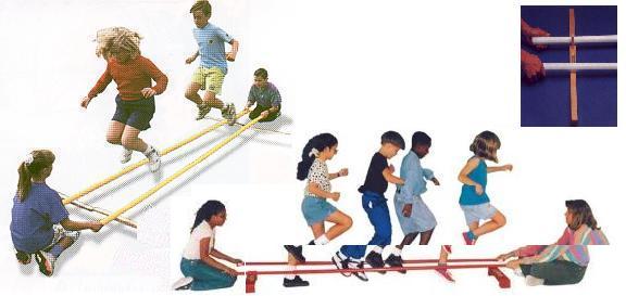 והמשתתפים מדלגים פנימה והחוצה בין המוטות,