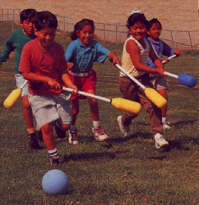 משחק הפילו פולו משוחק כמו הוקי, אך בטיחותי לילדים